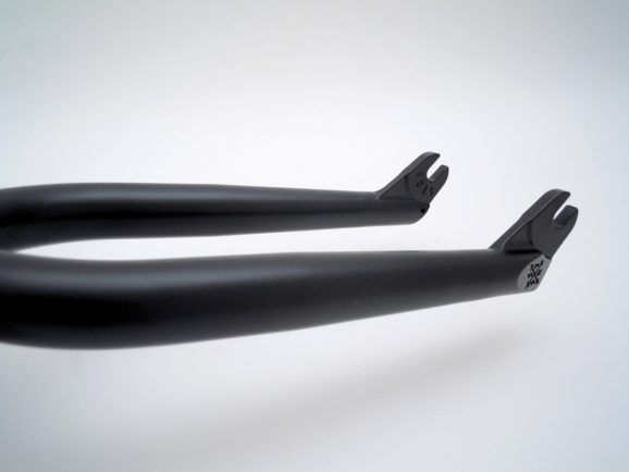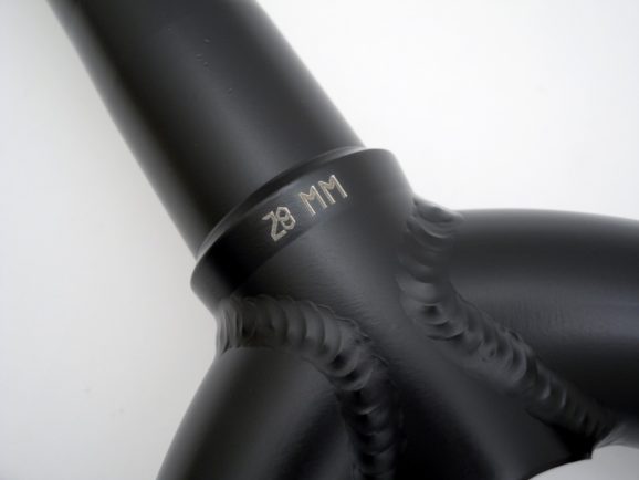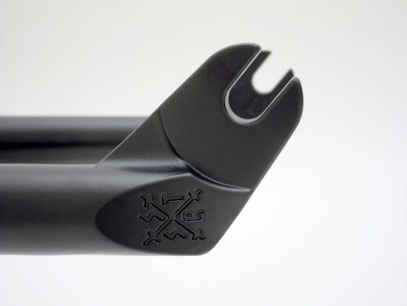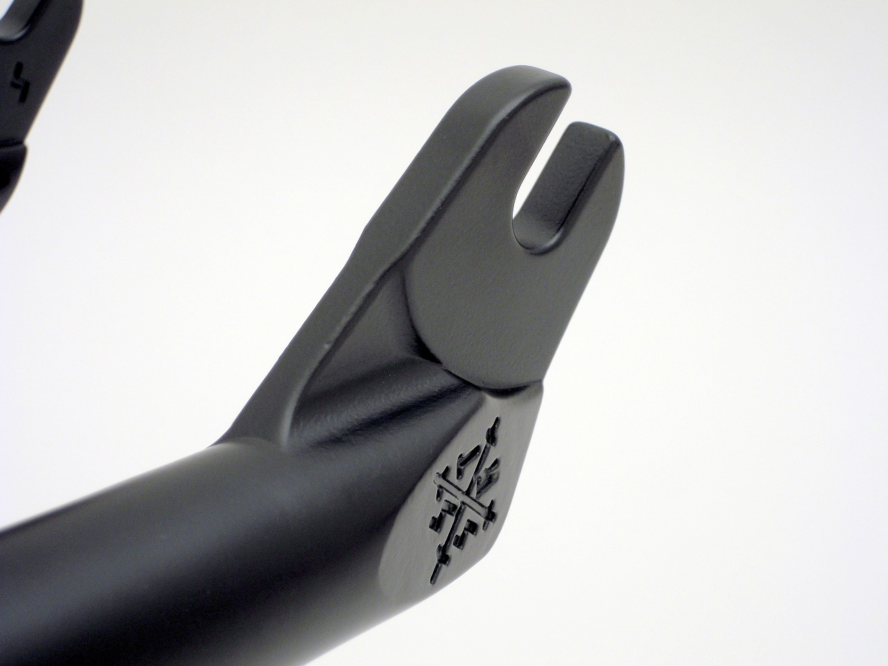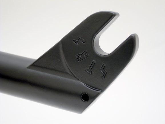 オフセット (突き出し) は28mm 1ピースのドロップエンドは見た目が美しいです!STRESS のロゴマークも入っていてカッコいいです!