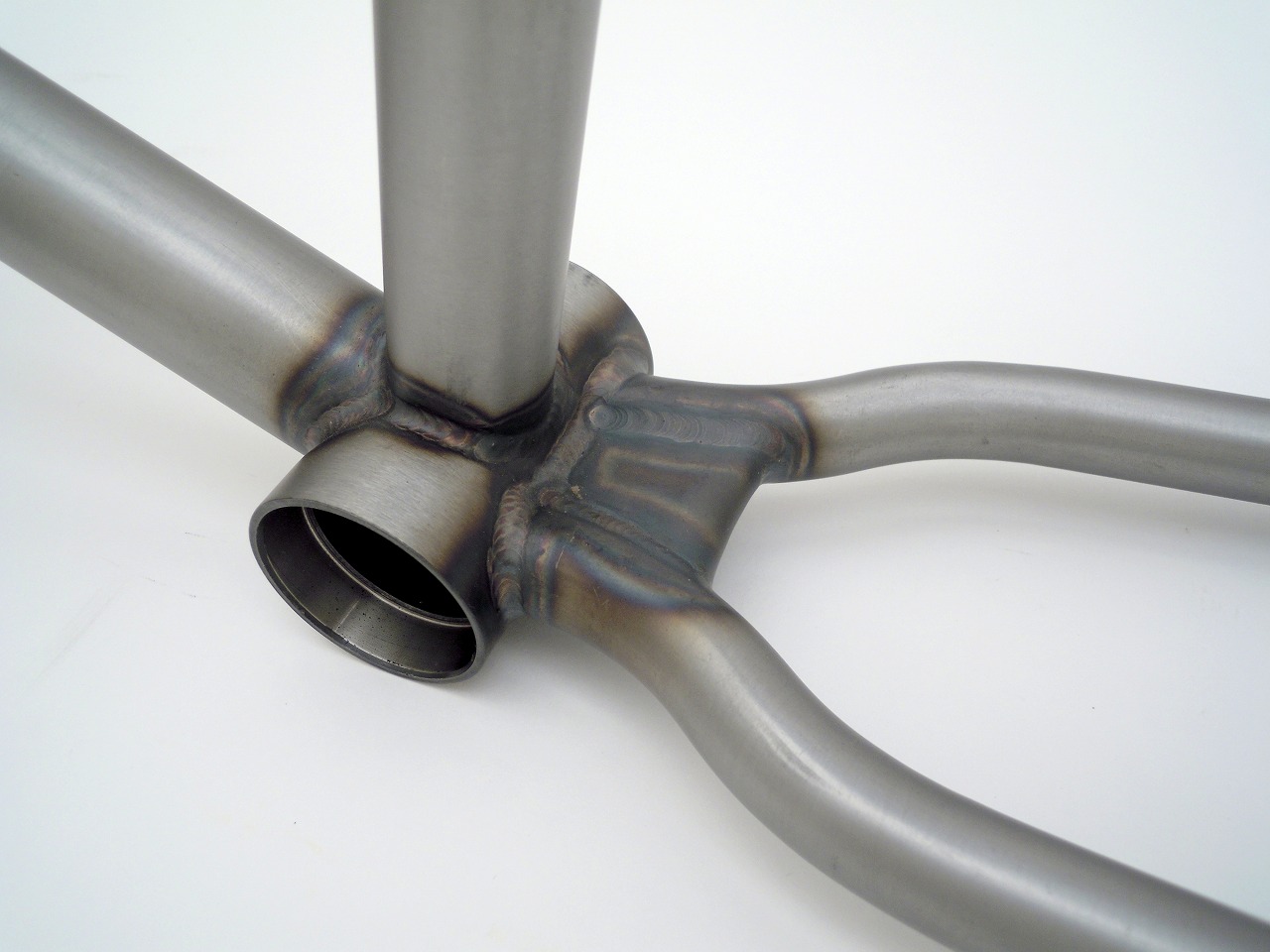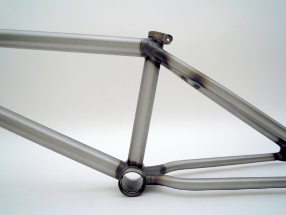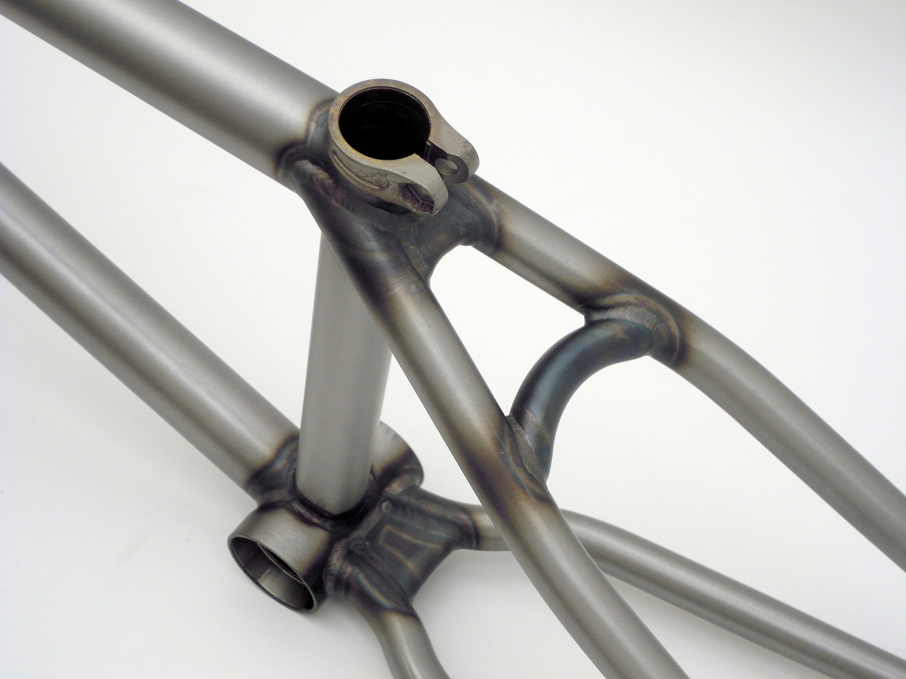 ヘッドチューブ角度は75度、強度を上げるために上下にガセットプレートを!