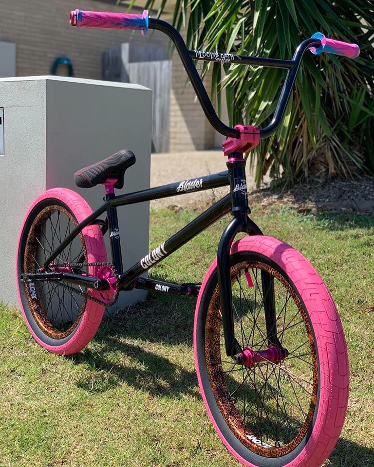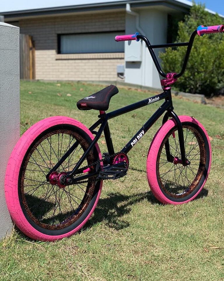ブラックのフレームにピンクのパーツを!ピンクが際立ってます!