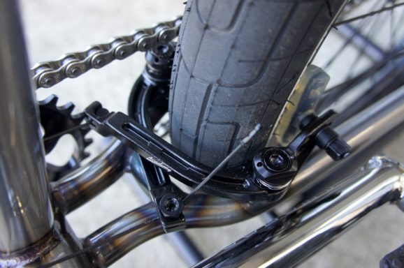 マイバイクにAcademy ブレーキ を取り付けましたー!ブレーキアーチは軽量な鋳造アルミ製!タイヤサイズは2.35″ なのですがクリアランスが確保出来てますね!