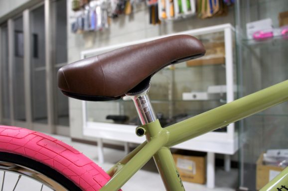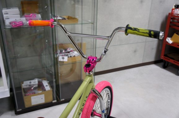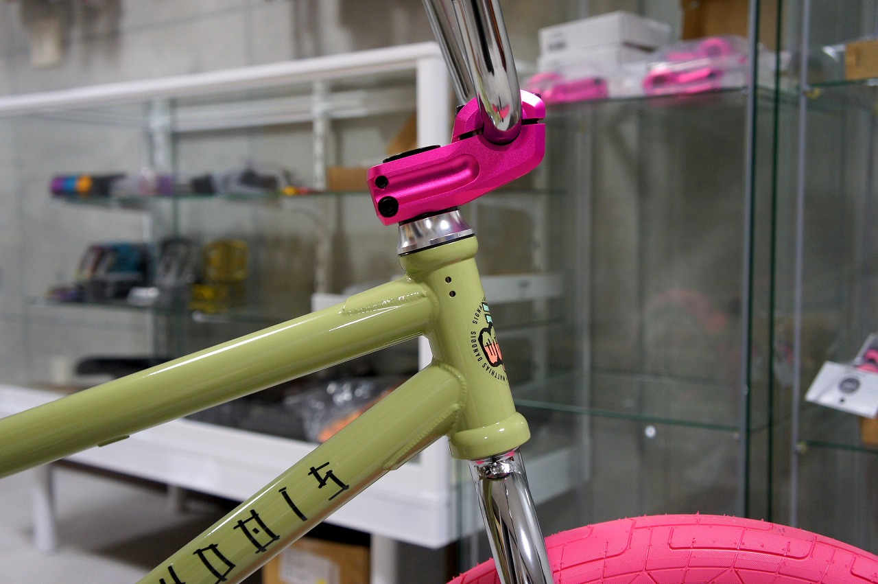 ポリッシュのパーツを沢山使っててカッコいいですよねぇー!グリーンのフレームにピンクのパーツもマッチしててオシャレです!