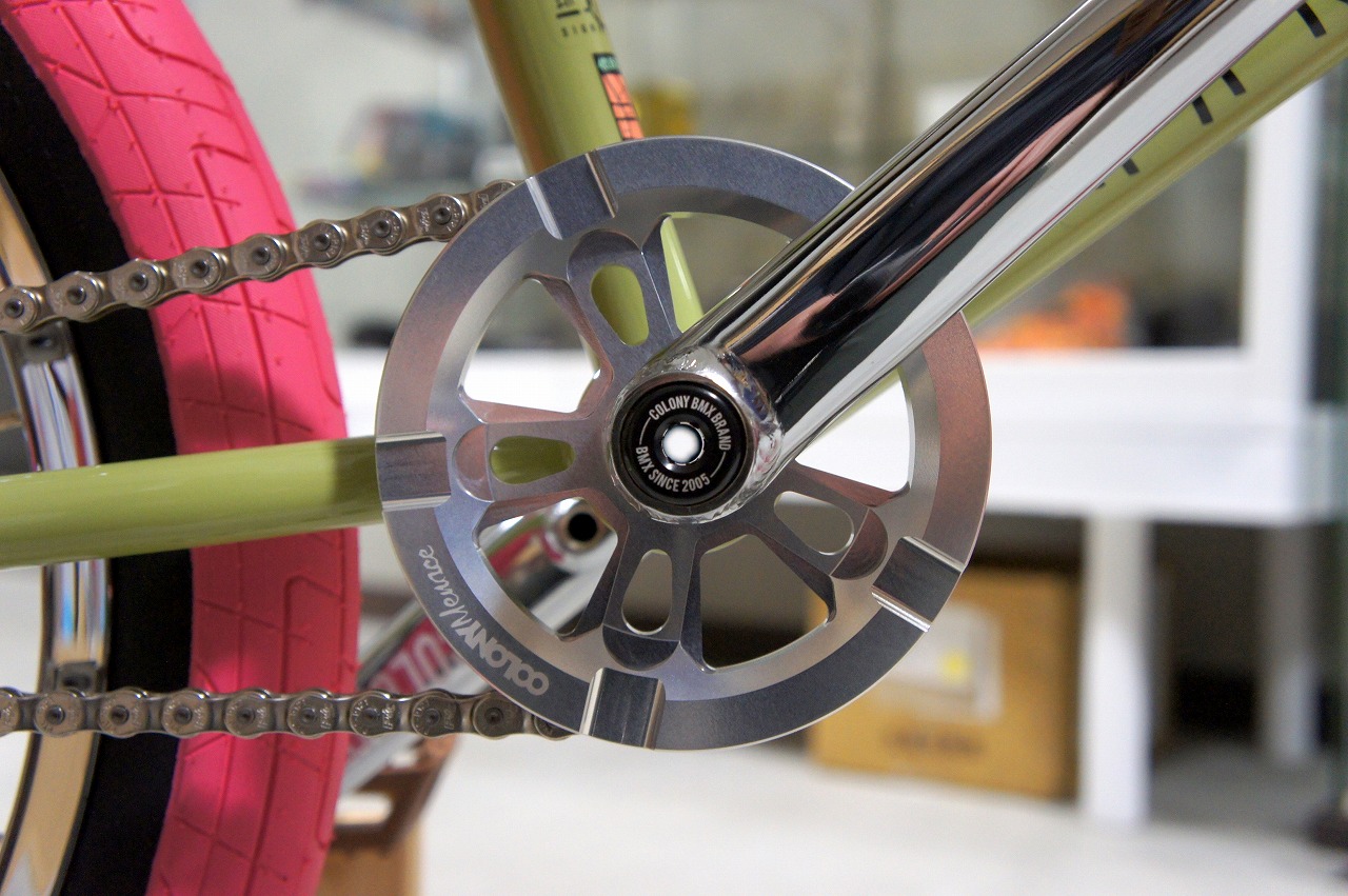 ハブはCOLONY Wasp Front Hub ピンク!左右にハブガードを標準装備、よく回るお勧めBMXハブです!