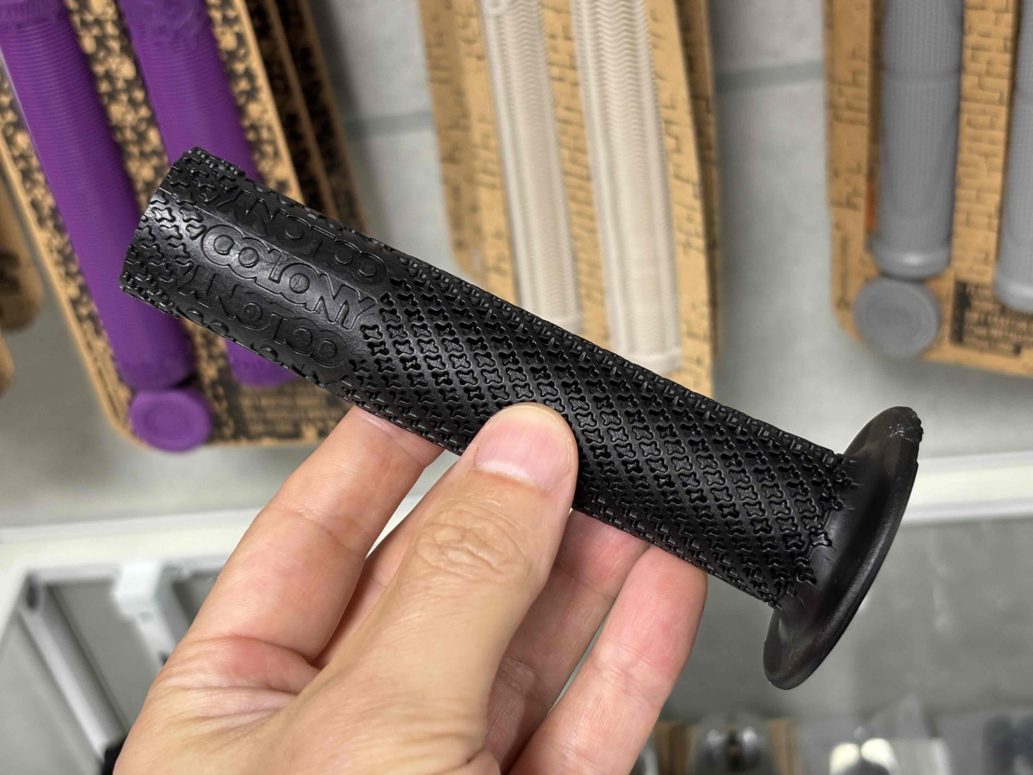 直径は28mm、外側にはCOLONY のロゴが入ってます!握ってみるとロゴ部分が少し細くなってます!